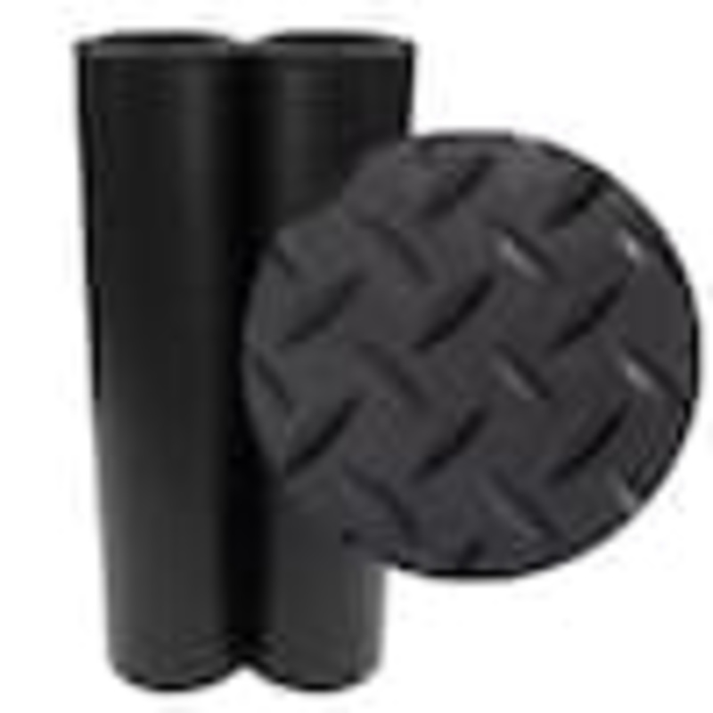 The Diamond-Plate rubber safety mat is designed after the classic metal diamond-pattern design. This non-slip rubber has a regular pattern of raised diamonds that imbue the industrial aesthetic. Our rubber floor mats are made to floor and protect surfaces just like their metallic ancestors. But with rubber runners, the end-user has the benefits of a forgiving surface that will absorb impact and shock at ultra-affordable costs. It helps safeguard floors and the equipment on top of the floors. Unlike metal, rubber matting will not ding, dent, or permanently damage either the floors or the equipment when materials are dropped onto it. Used on stairs and catwalks in industrial settings, the added texture reduces the risk of slipping. For this reason, Diamond-Plate rubber floor mats are frequently used on the interior of vehicles or trailers. This product is ideal for use as: treadmill mats, non-slip mats, safety mats for kitchens, gym mats, kennel mats, van floor mats, residential garage floor covering, or just utility mats. It is made from 100% synthetic rubber and allows it to be used in outdoor walkways without worry. It is resistant to dampness and will not be affected by wet weather making for a superior outdoor floor covering. Buy one of these rubber floor mats for their superior functionality, and enjoy the classic industrial design for years to come!