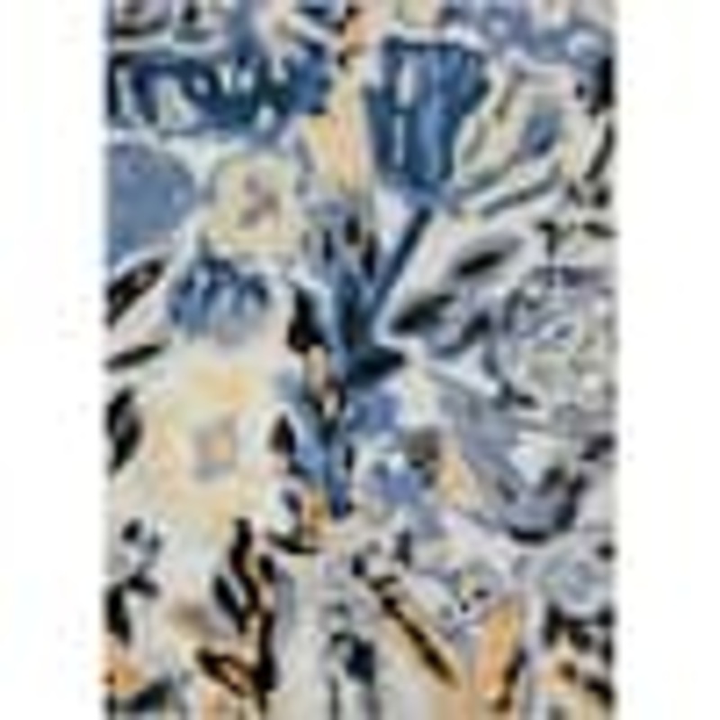 With a floral motif that extends out to the very edges of this machine-made, polypropylene rug, your space will be infected with its buoyant beauty. Designed on a pearl-colored setting, the blooms are awash in vibrant blues with pops of yellow and black. I