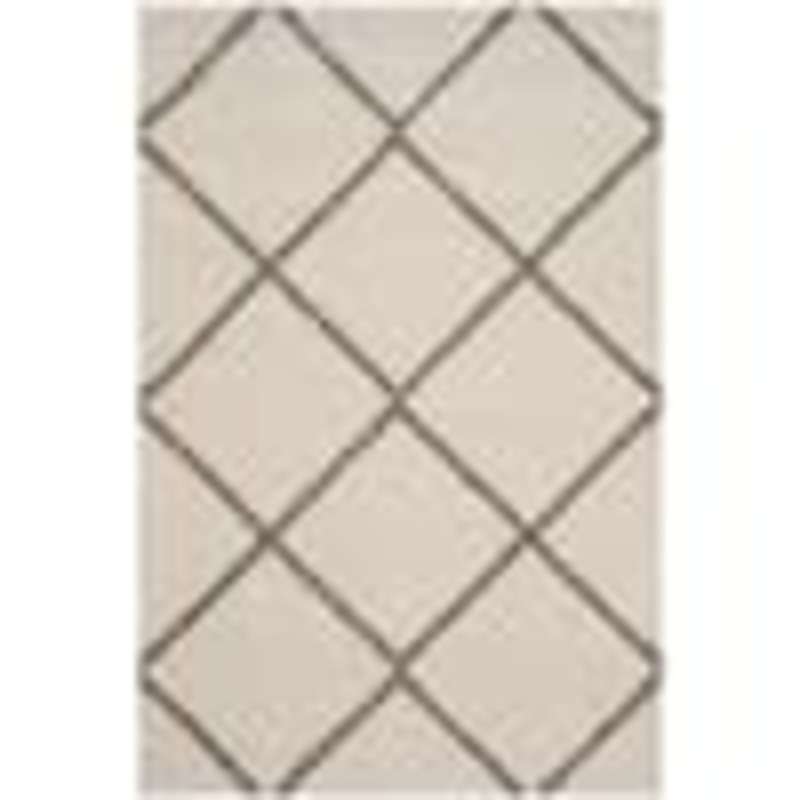 The large, grey diamonds and lush ivory pile of this Hudson shag are perfectly matched for a look that defines classic contemporary. The thick plush pile of this lovely shag floor covering is power-loomed using durable, easy-care fibers that will stay beautiful and luxurious even in high traffic areas of the home. The ideal choice to add comforting texture and a soft-underfoot feel to modern or rustic country decor.
