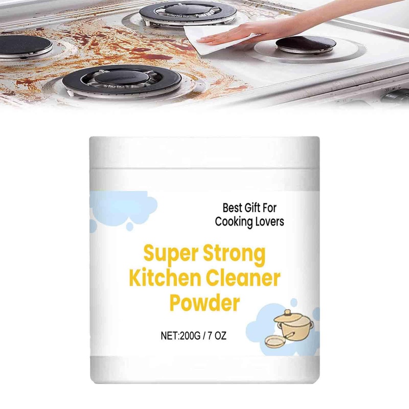Super Strong Kitchen Cleaner Powder, 2024 New Powerful Kitchen All-Purpose Powder Cleaner Household Multifunctional Strong Cleaning Agent, Stubborn Stains Kitchen Foam Cleaner for Kitchen Powerful all-purpose cleaning powder with mild formula, no irritation, does no harm to the objects and hands. These kitchen powders with a rich, fast lather that cleans easily in just minutes! Foam rust remover kitchen all-purpose cleaning powder is suitable for a wide range of surfaces such as range hoods, pot bottoms, kitchen countertops, stoves, kitchen sinks, faucets, tile walls, and floors. Specification: Color: White Shelf Life: 3 Years Net Content: 200g Package Includes (Optional): 1 2PCS Kitchen Cleaner Powder Notes: 1. Colors may vary due to different monitors. 2. For manual measurements, please allow 1-2 cm for errors? Versatile All-Purpose Cleaner: Tackle grease messes on various surfaces including range hoods, countertops, and sinks, and even revitalize yellowed shoes to their original brilliance. ? Easy-to-Use Kitchen Foam Rust Remover: Simply dissolve in water, soak utensils, and witness oil and grease stains vanish effortlessly with minimal scrubbing required. ? Multi-Purpose Household Cleaning Agent: Experience the ultimate cleaning and conditioning solution that removes dirt, grease, rust, and stains while leaving a non-greasy, bright finish. ? Quick Foaming Powder Degreaser: Say goodbye to stubborn stains and greasy residue with our fast-acting cleaner that creates a rich lather for easy removal in minutes. ? Gentle and Effective Kitchen Cleaner Powder: Enjoy effortless cleaning with our powerful yet mild formula that is gentle on surfaces and hands, leaving no irritation or corrosion.