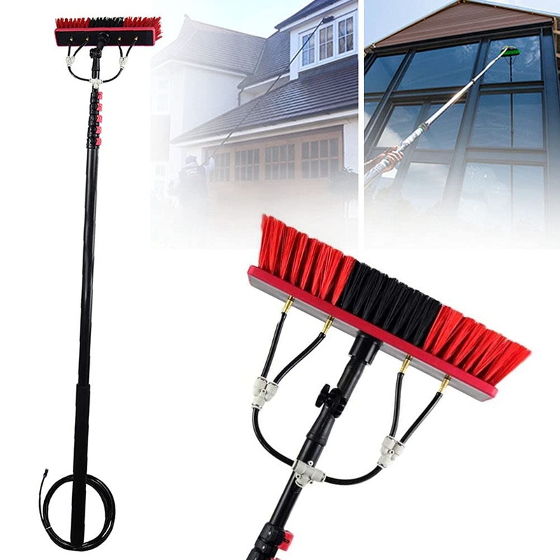With this window cleaning brush, you can reach the window from the ground faster and safer than ever. Features: Multifunctional water spray brush for high-altitude cleaning Using high-density reinforced aluminum alloy, high hardness, not easy to rust, light weight. It will not bend even if it is 10 meters long Steel buckle fixed for easy installation and removal Break-proof joint design can be used with a variety of cleaning tools to complete advanced cleaning operations Pure copper switch, corrosion resistant and more durable Universal design, the brush head can be freely rotated Product parameters: Material: aluminum carbon fiber Brush width: 35CM Closure method: twist lock Water supply hose: 20M Specifications: 12ft 3.6m, 18ft 5.4m, 20ft 6m, 24ft 7.2m, 30ft 9m, 36ft 10.8m Service: If you have any questions, please email us, we will reply to you within 24 hours and provide you with the best service.[MULTIFUNCTIONAL USE]: The suit contains a soft multifunctional brush head and a powerful cleaning tool for retractable aluminum tubes. The ideal solar panel cleaning tool, it can also be used to clean cars, trucks, vans and windows, greenhouses, boats, decks, etc. [NON-SLIP HANDLE]: Non-slip sponge handle, soft grip increases comfort, and cold water insulation on the handle. [MATERIAL]: The telescopic pole window cleaner is made of carbon alloy, with high hardness, heat resistance and corrosion resistance, easy to carry. Very hard-wearing and soft feather bristles ensure safe surface cleanliness. [WATER PURIFICATION BRUSH]: 35cm large water hole brush head, brass quick connector, with 20m water inlet hose, easy to connect to any faucet. The hose can be connected to the brush head to drain water and quickly clean anywhere. [ADJUSTABLE HEIGHT]: The length of the telescopic rod can be freely adjusted to clean the highest point and inaccessible corners. It is freely connected by a carbon alloy tube and fixed with a steel buckle, perfectly closed and install and disassemble.