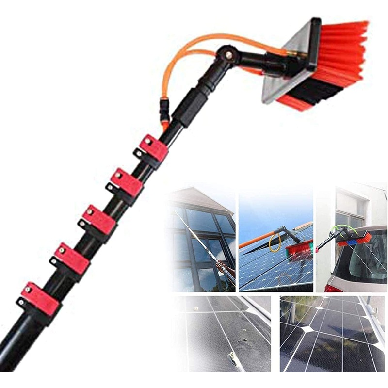 Are you still worried about cleaning high-altitude windows? With our window cleaning brush, you can ease your worries and clean your high-altitude objects easily and safely. Just plug in the faucet in your home and turn it on to quickly remove the dirt you can’t catch. Properties: – Multifunctional water spray brush, high-altitude cleaning. – Using reinforced aluminum alloy with high density, high hardness, not easy to rust and light weight. It will not bend even if it is 10 meters long. – The steel buckle is fixed for easy installation and removal. – The shatterproof connection design can be used with a variety of cleaning tools to perform high-level cleaning operations. – Pure copper switch, anti-corrosion and more durable. – Universal design, the brush head can rotate freely. Product parameters: Material: aluminum Brush width: 32CM Locking method: twist lock Water supply hose: 20M Specifications: 12ft 3.6m, 18ft 5.4m, 20ft 6m, 24ft 7.2m, 30ft 9m, 36ft 11m Areas of application: window cleaning, photovoltaic panel cleaning, bus exterior cleaning, large vehicles, trucks, trucks, caravans, ships, etc. Service: If you have any questions, please email us. We will reply you within 24 hours and provide you with the best service.Multifunctional Cleaning: The kit includes a soft multifunctional brush head and a powerful cleaning tool with a carbon alloy telescopic tube. The ideal solar panel cleaning tool can also be used to clean cars, trucks, vans, caravans, windows, greenhouses, boats, decks, etc. Useful Water Supplies: Our professionally crafted water guides are fun and easy to use. Just connect it to a regular household water source, turn on the tap and you can start cleaning windows, conservatories, panels and showcases right away. The user-friendly brush with water supply function can be easily connected to the garden faucet via a standard hose connection. Non-slip handle: The non-slip sponge handle, the soft handle increases comfort and is isolated from the cold water on the handle and can be easily adjusted by the included gooseneck attachment. Easily remove dust and stains from every corner. Adjustable Height: Long enough to clean most windows on the second floor and above. The brush head is very long and the angle to the plate or glass can be easily adjusted and cleaned with the included gooseneck angle adapter accessory. High-quality materials: high-quality telescopic poles are made of high-density reinforced aluminum alloy and carbon fiber, with high hardness, light weight, durability and safety. Soft water pipes are made of anti-rust and anti-freeze materials. durable and soft bristles ensure the surface safe and clean.
