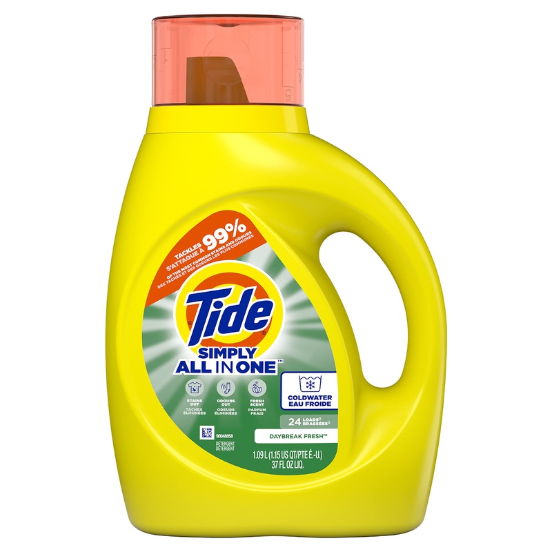 Tide Simply Clean and Fresh liquid laundry detergent has 2X the baking soda power to target tough odors deep in the fibers of your clothes. It is now more concentrated to provide more stain removal and freshness and less water . From America’s 1 detergent, to cover your many laundry needs. Also try our small but powerful Tide PODS laundry pacs. Measure your loads with cap. For medium loads, fill to bar 1. For large loads, fill to bar 3. For HE full loads, fill to bar 5. Add clothes, pour into dispenser, start washer. vs. previous formula based on salesWorks in laundry loads for both HE and non-HE washing machines. With a more concentrated formula, you get more cleaning agents and less water in every drop. vs. previous formula. Cleans fabrics in just 1 wash with no pre-treating required. 2x the power of baking soda laundry detergent . Tough on odors, easy on your wallet.