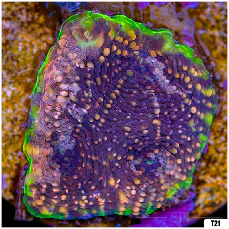 Acans are an LPS coral that come in a wide variety of colors and patterns. Acans are a fairly easy to care for coral. They require low to moderate light, low to moderate flow and appreciate an occasional feeding.