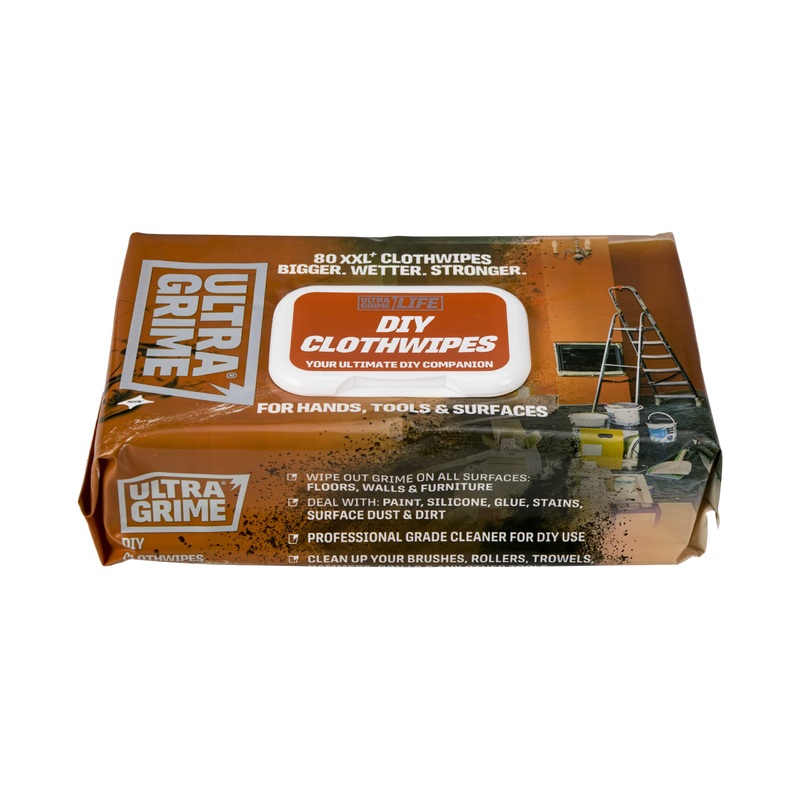 With these Clothwipes, you can be sure to clean up the spills and messes that happen all too easily when doing those DIY jobs. From removing paint out of carpets to adhesive from floors, they can handle anything you throw at them. Safe & kind to hands with added Vitamin E. INGREDIENTS Cleaning WipesRECYCLABLE PACKAGING – Less waste for the planet! We use recyclable packaging, so you can feel good about using UltraGrime wipes. They’re tough on dirt and grime but gentle on the environment. DIY USE – Our professional grade cleaner is perfect for tackling any DIY mess. From paint to silicone to glue, these wipes can handle it all! Clean up your brushes, rollers, trowels, hammers, drills and any other tools in no time. STAYS WET AND USABLE FOR OVER 60 MINUTES! – Our advanced moisture retention system will keep your UltraGrime wipes wet and usable for longer. No more having to switch out wet wipes for new ones constantly. DEAL WITH GRIME ON ALL SURFACES – Whether it’s floors, walls, or furniture, UltraGrime has you covered. These wipes are packed with cleaning power for paint, silicone, glue, stains, surface dust and dirt. OUR LARGE WIPES GO FARTHER THAN ANY 3 GENERIC WIPES! – Our XXL cloth wipes are 38cm x 25cm, double the size of common wipes. They’re thick, flexible, and durable, with an absorbency capacity to handle any mess.