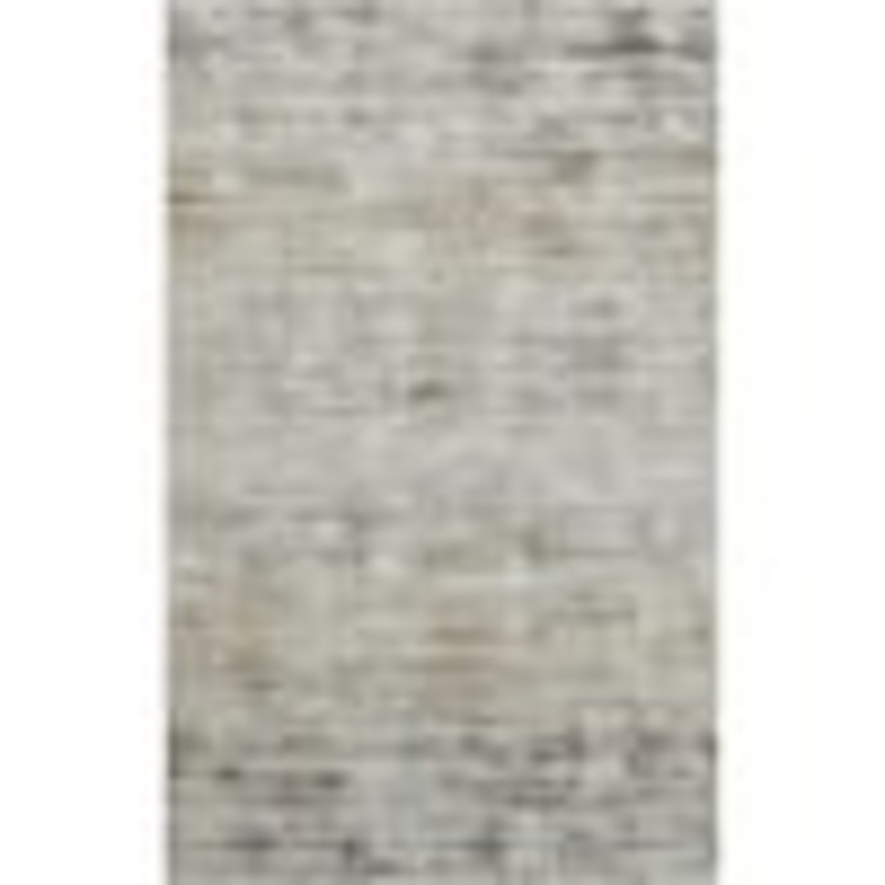 Give your space a subtle surge of contemporary style with this deliciously soft area rug. This piece features a lightyly distressed geometric stripe pattern in in variegated hues of beige, gray, and cream. The polyester blend fibers have a high-low texture that makes the pattern multi-dimensional while maintaining an extra-low pile height. Thick woven on a cotton backing, this rug provides premium luxe softness and durability.