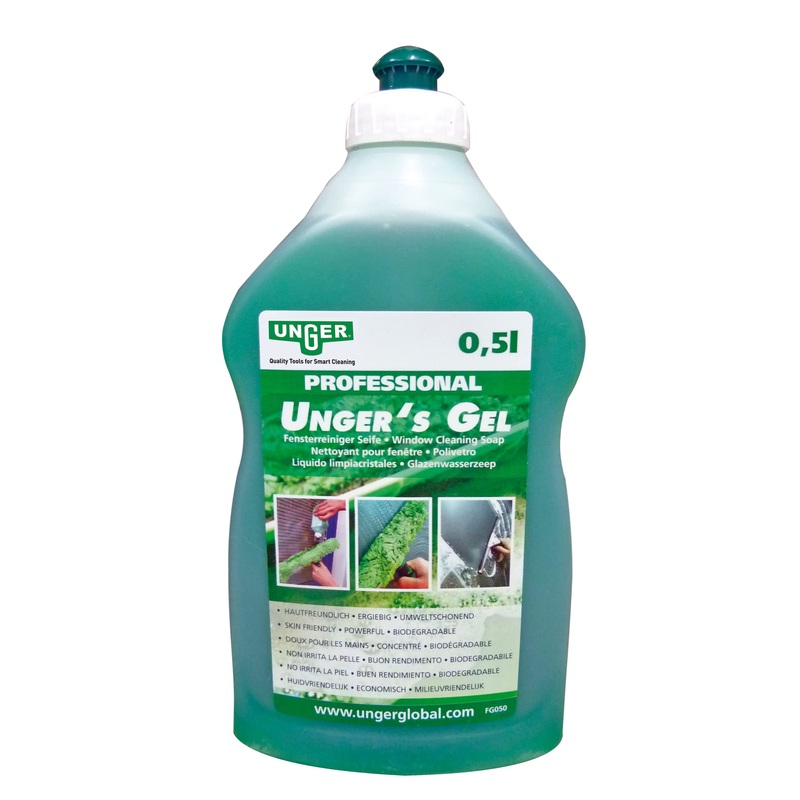 Window cleaning soap, liquid. Concentrate. Unger's Liquid Window Cleaning concentrated Soap with Unger's liquid concentrate, squeegees glide easily across glass while instantly dissolving built-up grime and grease.Mixing Ratio 1:100. Simply add to water. E