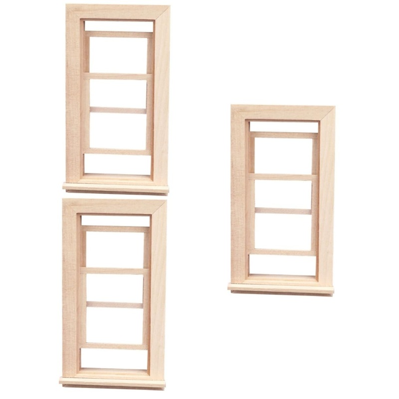 Package List 3 x Playing House Window Characteristics -Size: 13.90X9.10X1.70cm 5.46X3.58X0 Dolly House Decor. -Material: wood Wooden Window Ornament -Note: Suitable for 1:12 playing house Playing House Ornament. -Color: Khaki Dolly House Photography Prop -