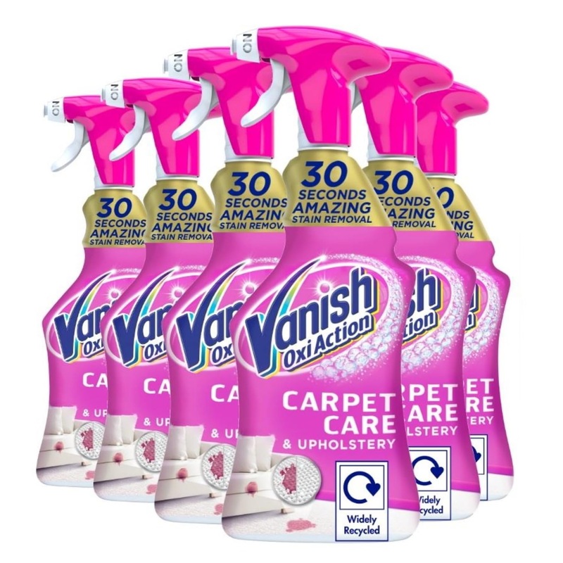 Vanish Carpet Cleaner + Upholstery Stain Remover Spray is specially designed to give you newer looking carpets. Bringing our best stain removal formulation to safely and effectively remove stubborn spots & stains from your carpet & upholstery, from rugs to sofas. Acting against the stains you clearly see to the tougher ones that may be hidden deep in the fibres. For an easy and effective way of cleaning your carpets & upholstery. For the best result use Vanish Gold Stain Remover Spray in combination with our Foam Shampoo or Powder for amazing cleaning results. Always follow the usage instructions on pack.Spot + stain remover spray. 1st time amazing stain removal. Carpet care + upholstery. Removes set in stains & odours. Sold as pack of 6. Vanish Gold Oxi Action Carpet Cleaner & Odour Stain Remover Spray.