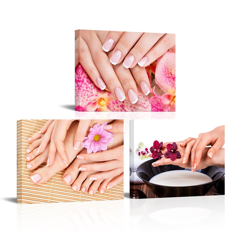 Canvas Wall Art Ready to HangPerfect for girls bathroom decor, nail salon decor, beauty salon decor. Durable & Long-Lasting: Built to withstand the test of time, our canvas wall art is made with premium materials and expert craftsmanship, ensuring it stays beautiful for years to come. Easy to Clean: Simply wipe clean with a damp cloth, making maintenance effortless for everyday life. Lightweight & Easy to hang: Included mounting hardware, making it a breeze to install on any wall. Size:12inchx16inchx3 Pieces (30cmx40cmx3 Pieces).