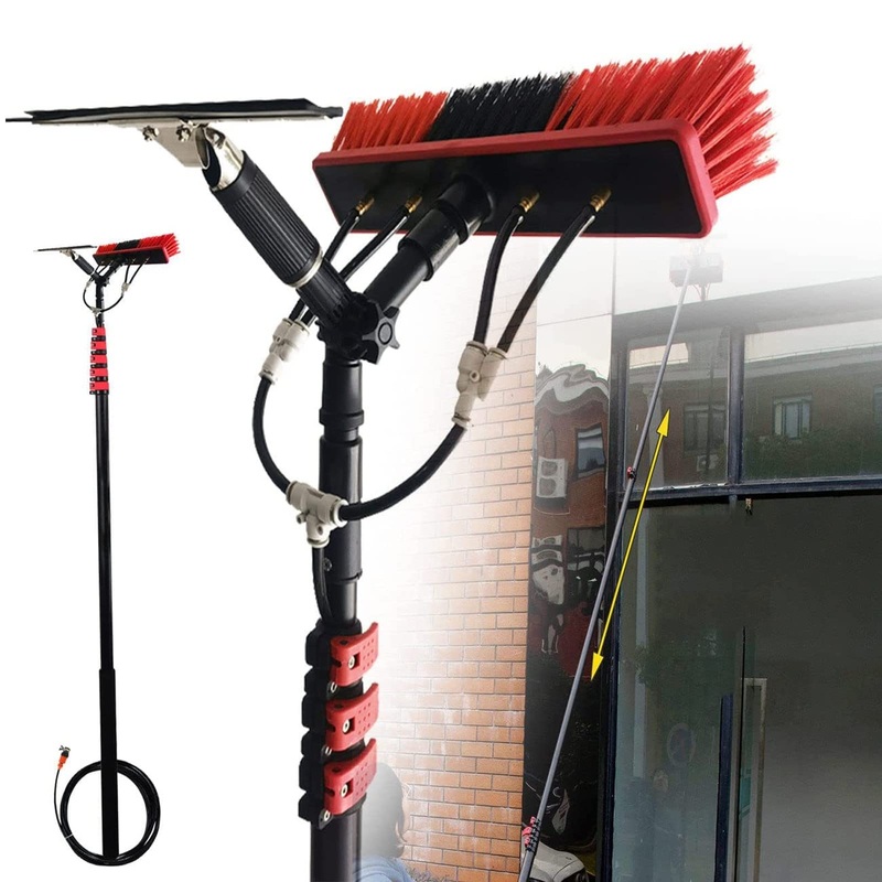 Welcome to the shop, thank you for your presence and trust! You can click on our shop to see more products. Introduction Water feed bar kit with squeegee Retractable aluminium pole and 180 rotating brush and complete accessories. Specifications Product name: window cleaning brush. Material: high-density aluminium alloy Surface: electrophoresis process Size: 12FT 3.6M, 18FT 5.4M, 20FT 6M, 24FT 7.2M, 30FT 9M, 36FT 10.8M Brush head: 35cm Weight of single pole net: 0.25kg Single pole length: 1m 1.5m Maximum connection height: 10.8m Scope of use: Window cleaning, Photovoltaic panel cleaning, Bus/outdoor cleaning, Large vehicles, Trucks, Caravans, Boats etc. Tip. 1.Due to the difference of light and screen, the colour of the item may be slightly different from the pictures. 2. Please allow 1-3cm differences due to manual measurement. 3. If you have any questions, please contact us and we will reply you within 48 hours.Telescopic rod: The length of the cleaning brush can be freely adjusted. Available in 6 sizes: 3.6 m /5.4 m /6 m /7.2 m /9.0 m /10.8 m, allowing users to easily clean windows near the house or other yard or office emissions. Wide range of uses: suitable for cleaning high-rise windows, cleaning solar photovoltaic panels, cleaning cars, trucks, vans, caravans, windows, greenhouses, boats, bridges, etc. Convenient water supply: our custom water supply poles are fun and easy to use, just connect to any standard domestic water source, turn on the tap and you’re ready to clean your windows, porches, fascias and soffits in no time . Simple and straightforward to use, the water powered brush easily connects to your garden tap with standard hose connectors, the kit is ready to use right out of the box. High quality materials: high density reinforced aluminum alloy, high hardness, not easy to rust and light weight. The single pole weighs only 0.25 kg and can be easily used by the elderly and women. Very durable and soft feather bristles ensure a safe and clean surface. Retractable window cleaning stick: still worried about high altitude cleaning? Our products are designed for high altitude cleaning. Multiple rods can be connected freely without bending. Fixed steel buckle, perfectly closed, easy to install, easy to disassemble.