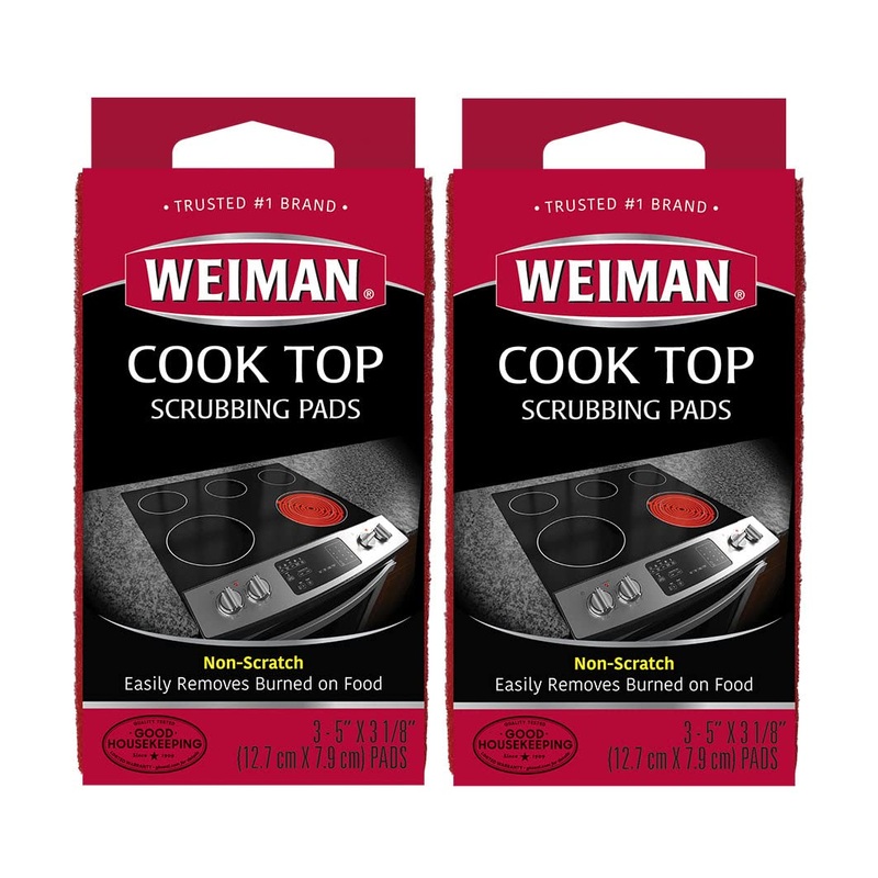 Enhance the natural beauty of cooktop surfaces in your home with the Weiman Cooktop Scrubbing Pads. The Weiman Cook Top Scrubbing Pads are engineered with a streak-free, non-abrasive formula to clean, shine & protect all glass/ceramic/induction cooktop, countertop & bar surfaces without scratching or damaging your appliances. The Weiman Cook Top Scrubbing Pads are made in the USA & designed with a gentle, yet effective formula that safely cleans up stubborn stains, splattered food & greasy, oily residue to revitalize and maintain your surfaces that keeps your kitchen shining brighter and longer. Weiman Cooktop Scrubbing Pads are specially formulated to remove grease, grime, dirt & fingerprints while also made to easily cut through the toughest burned-on food & baked stains, allowing you to achieve the perfect results your home deserves. A unique, non-toxic formula, safe to use regularly on any smooth top range, electric flat top grill, induction grill and all radiant, halogen glass, ceramic or glass cooktops. The scrubbing pads are engineered with 100% plastic that safely clean glass/ceramic/induction smooth top and glass top ranges, making the Weiman Cook Top Scrubbing Pads an essential for everyday treatment. Weiman Products is the perfect home, chef, pro, scratch resistant, cleansing, household, professional, and at work solution for all of your cooktop cleaning and buffing needs. Weiman wants each of the surfaces in your home to look its best. Thats why we have developed cleaning products that go beyond simply cleaning to beautify and protect each of your delicate, difficult to care for surfaces. From stainless steel to leather to granite, each of our products is formulated specifically for one surface and one surface only; allowing you to achieve the perfect results that your home deserves. A clean home is great, but we want it to look more than clean, we want it to look spectacular!Use On – All major glass/ceramic cooktop manufactures including GE, Whirlpool, Frigidaire & Thermador. Safe – Leave a streak-free shine while removing splattered food, dirt, oily residue & watermarks. Shines – Dramatically cleans, shines and protects glass/ceramic/induction smooth top ranges. Revitalize – Cooktop pads make sure to clean with a gentle, yet effective touch & will not scratch. Reveal – Non-abrasive cooktop pads help easily remove heavily burned on foods, grease & grime.Best Sellers Rank: See Top 100 in Health & Household. Number of Items: 2. Item Weight: 0.02 Pounds. Item Dimensions LxWxH: 3 x 2 x 5 inches. Item Package Quantity: 2. Special Feature: Non-Toxic. Color: Red. Surface Recommendation: Ceramic. Material: Plastic. Brand: Weiman. : B00SJO3MPO. Manufacturer: Weiman. Date First Available: May 18, 2013. Item model number: WMN-002B. Product Dimensions: 3 x 2 x 5 inches; 0.32 Ounces. Is Discontinued By Manufacturer: No.