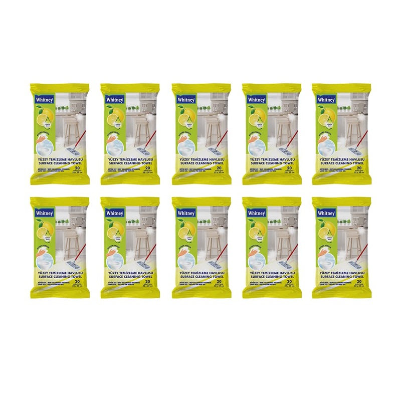 Whitney Surface Cleaning Towel offers practical solutions for general floor cleaning and surfaces that you need hygiene such as ceramic, tile, marble, laminate parquet, kitchen, sink, washb, toilet bowl. Suitable for mop use, the product provides ideal cleaning with its large size, emmbossed fabric surface and strong cleansing lotion with lemon scent. INGREDIENTS Wiplesproduct provides ideal cleaning with its large size, embossed fabric surface. Cuts through the toughest of dirts, grease and grime. Strong cleansing lotion with lemon scent. Resealable pack with a moisture lock lid. Removes bacteria. Suitable for general floor cleaning and surfaces that you need hygiene such as ceramic, tile, marble, laminate parquet, kitchen, sink, washb, toilet bowl.