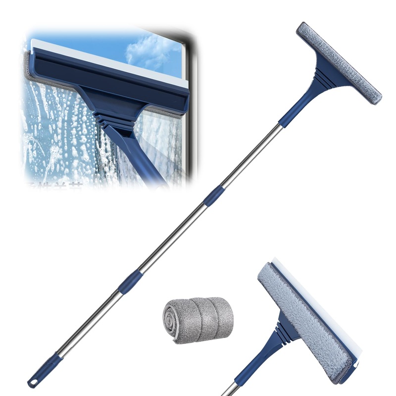 Specification Product Name: Telescopic Handle Window Cleaner Product material: PP stainless steel silica gel. Product size: Three-piece rod: pole length: 102-136cm 4 section pole: pole length: 142-176 cm Plate: 26 x 4.5 cm. Scope of application: glass, ceramic tiles, composite floors, mirrors, desks, etc. List: glass cleaning brush x 1 piece cloth x 1.Wide application: the high-quality window wiper cleaner is not only suitable for window cleaning, but also for cleaning bathroom glass, kitchen worktops, mirrors, car windows and various other surfaces. The multifunctional design provides more convenience when cleaning your home, makes your entire home look fresher, and makes cleaning tasks more efficient and convenient. SCRAPER 2 REMOVABLE MICROFIBER PADS The package includes a cleaning scraper that allows you to scrape off stubborn dirt before rinsing, which makes the cleaning process more convenient and eliminates the need for tedious hand washing. In addition, a replaceable microfibre pad is included to remove stubborn stains on glass. Telescopic window washer with bendable head: the head of the window wiper cleaner has an elastic joint that adapts perfectly to the cleaning surface, ensuring thorough cleaning and easy removal of dirt and stains. Effectively removes stubborn dirt from windows and makes demanding cleaning tasks easier and safer. High-quality materials: the window wiper cleaner is made of high-quality natural silicone and microfibre cloth. These materials clean windows effortlessly and will not scratch or damage the glass surface. In addition, it has excellent wear resistance, ensuring efficient cleaning after prolonged use. Telescopic Handle Window Cleaner: Our rubber window cleaning tool bag features a unique design that allows it to be used as a hand tool or with an extension rod. The extension pole is sturdy and durable and can grow from 102 cm to 131 cm long or from 142 cm to 176 cm long. This allows you to easily clean hard-to-reach high-altitude areas.