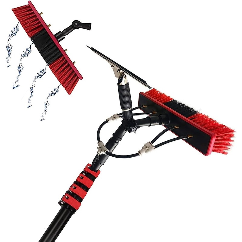 Still awkwardly trying to climb the ladder to clear the tall windows! With this window cleaning brush you can reach the window from the ground faster and safer than ever before. This is a fully scalable water column cleaning system that can be connected to a clean water system or a garden hose. Product parameters: Material: aluminum carbon fiber Water supply hose: 20M Brush width: 35 cm Specifications: 12FT3.6M, 18FT5.4M, 20FT6M, 24FT7.2M, 30FT9M, 36FT11M Area of application: window cleaning, photovoltaic panel cleaning, busexterior cleaning, large vehicles, trucks, trucks, caravans, boats, etc. Features: Multifunctional water spray brush, high-altitude cleaning Using reinforced aluminum alloy with high density, high hardness, not easy to rust and light weight. It doesn’t bend even if it’s 10 meters long Can be used with a variety of cleaning tools to perform high-level cleaning operations The steel buckle is fixed for easy installation and removal Pure copper switch, anti-corrosion and more durable Universal design, the brush head can rotate freely Non-slip sponge handleCustomer Service:We Are Committed To Bringing A Good Shopping Experience To Our Customers.No Matter You Have Any Questions About The Product,Please Don’t Hesitate To Contact Us Via Email,And We Will Solve Your Confusion As Soon As Possible. HIGH-QUALITY MATERIAL – The telescopic pole is made of high-density carbon alloy with high hardness, not easy to rust, light-weight, heat-resistant, corrosion-resistant, and easy to carry. EASY TO USE – The steel buckle is firm, fully closed, and can be installed and disassembled quickly. The brush head plate or glass plate is fixed at a certain angle. The universal design allows the brush head to rotate freely, effortlessly picking up dust and stains in every corner. TELESCOPIC WINDOW CLEANING ROD:Enough to clean most windows on the second floor and above. The brush head is very long and the angle to the plate or glass can be easily adjusted and cleaned with the included gooseneck adapter accessory. CLEANING AREA:Clean high windows, clean solar panels, clean cars, trucks, caravans, windows, greenhouses, boats, decks. It is easy to remove the dust on the surface of photovoltaic panels to improve the power generation efficiency.
