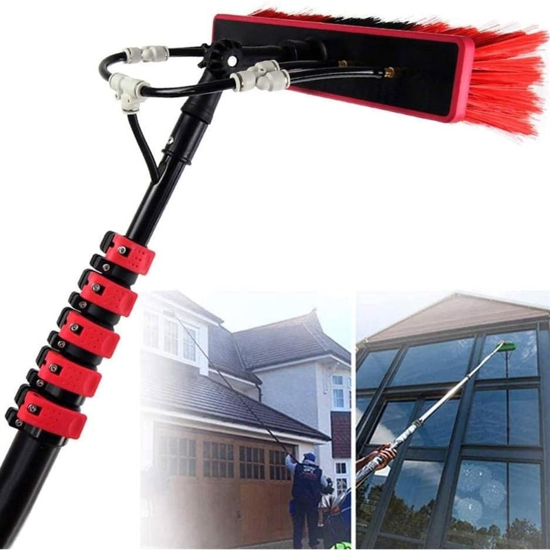 Are you still awkwardly trying to climb the ladder to clear the high windows With this window cleaning brush, you can reach the window from the ground faster and safer than ever. This is a fully scalable water column cleaning system that can be connected to a pure water system or garden hose. Features: Multifunctional water spray brush, high altitude cleaning Using high-density reinforced aluminum alloy, high hardness, not easy to rust, and light weight. It will not bend even if it is 10 meters long Can be used with a variety of cleaning tools to perform high-level cleaning operations The steel buckle is fixed for easy installation and disassembly Pure copper switch, anti-corrosion and more durable Universal design, the brush head can rotate freely Sponge non-slip handle Product parameters: Material: aluminum carbon fiber Water supply hose: 20M Brush width: 35CM Specifications: 12FT 3.6M, 18FT 5.4M, 20FT 6M, 24FT 7.2M, 30FT 9M, 35.4FT 10.8M Scope of use: window cleaning, photovoltaic panel cleaning, bus exterior cleaning, large vehicles, trucks, trucks, caravans, boats, etc. Packing list: Telescopic rod 1 brush head 1 angle adjustment joint 1 three-way split joint 1 European quick joint 1 locking mechanism adjustment tool 1 water supply hose 1 Service: If you have any questions, please email us, we will reply to you within 24 hours and provide you with the best service.APPLICATION RANGE: Retractable cleaning rod water supply brushcan be used for a variety of cleaning tools to complete advanced cleaning operations. Window cleaning poles water fed brush ideal for clean high windows, solar panels, ceilings, glass walls, trucks, cars, caravans, windows, boats, greenhouses, decks, etc. CONVENIENT WATER SUPPLY: Our custom water supply rods are fun and easy to use, just connect to any standard household water source, turn on the faucet and you’ll be able to clean your windows, greenhouses, fascia and soffit all in no time. Simple and straightforward to use, the water supply brush easily attaches to the garden faucet via a standard hose fitting. PRODUCT MATERIAL: High-density reinforced aluminum alloy, high hardness, not easy to rust, light weight. Both the elderly and women can use it easily. Very durable yet soft feather bristles ensure safe surface cleanliness. ADJUSTABLE HEIGHT: Enough to clean most windows on the second floor and above, the brush head is very long, and the angle to the panel or glass can be easily adjusted and cleaned with the included gooseneck angle adapter accessory. WINDOW CLEANING KIT: Our water spray cleaning brush are specially designed for high altitude cleaning. Multiple rods can be connected freely without bending. The soft sponge-covered handle firmly holds the brush head and extends it at an angle to the panel or glass plate, which can be easily adjusted by the included gooseneck attachment. Let you easily solve the dust and stains in every corner.