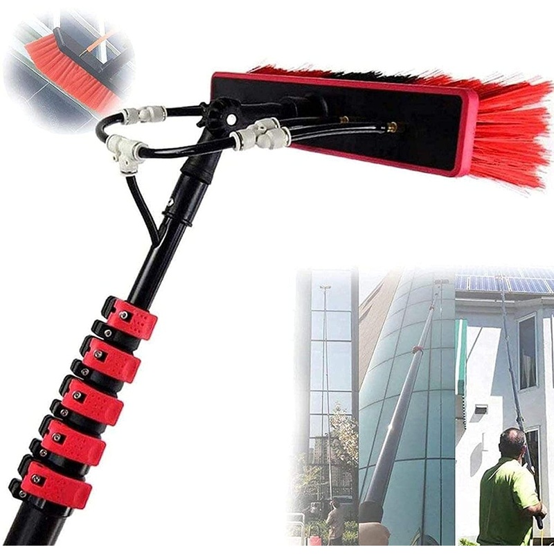 Are you looking for a practical and economical solution to cleaning those tall windows or solar panels? With our window brush, you can clean things easily and safely, just plug in the household faucet and turn it on to quickly remove the dirt you can’t catch. Feature: -Multifunctional water spray brush for high-altitude cleaning. -Using high-density reinforced aluminum alloy, high hardness, not easy to rust, light weight. It does not bend even if it is 10 meters long. -The steel buckle is fixed for easy installation and removal. -The shatterproof hinge design can be used with a variety of cleaning tools to complete advanced cleaning operations. -Pure copper switch, anti-corrosion and more durable. -Universal design, the brush head can rotate freely. -The single pole is 1m long, easy to carry. –Optional 50cm brush head and 30cm brush head. Product parameters: Material: high density aluminum alloy Surface: electrophoresis process Mother tube diameter: 2.9 cm Secondary tube diameter: 2.6 cm Net weight single pole: 0.25 kg Single pole length: 1m 1.5m Maximum connection height: 10.8 meters Thank you for shopping in this store, if you have any questions, please email us, we will reply you within 24 hours, we will provide you with the best quality products and services?WIDELY USED?Suitable for cleaning windows in high places, cleaning photovoltaic solar panels, cleaning shop signs, door heads, billboards, cleaning cars, trucks, vans, caravans, greenhouses, boats, decks, etc. ?MULTIFUNCTIONAL WATER SPRAY BRUSH? Can be used in conjunction with a variety of cleaning methods to complete advanced cleaning operations. It can be cleaned by spraying with a brush, or using a mop to remove dust or a scraper to remove snow. Use this tool to clean and save, can improve efficiency. ?CONVENIENT WATER SUPPLY? The water supply rod is easy to use, just connect a normal household water source, turn on the faucet, and it can be cleaned immediately. The brass hose connector can be easily connected to the garden hose with any hose connector, easy to use (quick connect, not included). ?PROTECT YOUR SAFETY? Still worrying about high altitude cleaning? Our products are specially designed for high-altitude cleaning. The working height is 3.6m-10.8m (12FT-36FT), and multiple poles can be freely connected. The steel buckle is firm, easy to install and disassemble. The brush head can rotate freely, so you can easily solve dust and stains in every corner. ?HIGH QUALITY MATERIALS? High density reinforced aluminum alloy, high hardness, not easy to rust and light weight. Both the elderly and women can use it easily. The soft fiber brush is not easy to loosen and will not damage the photovoltaic panel. Concealed water pipe design avoids tangles and improves efficiency.