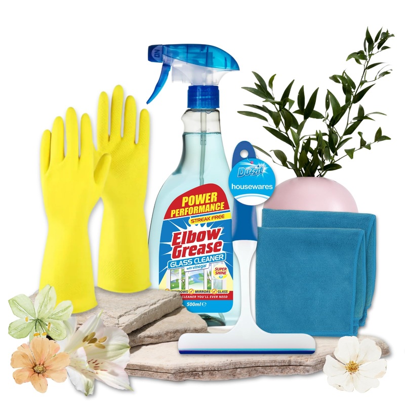 Window, Mirror & Glass Cleaner Bundle | Elbow Grease Glass Cleaner Spray with Vinegar 500ml, Window Squeegee 1pc, Microfibre Cloths 2pc, Rubber Gloves Large 1pk | Sinta Gifts Glass Cleaning Solution 1x Elbow Grease Glass Cleaner 500ml 2x Bettina Microfibre Cloths XL 1x Duzzit Bright Window Squeegie 1x GLOVES Elbow Grease Bathroom Rubber Gloves – L 1 pk? 100% CLEANING PROMISE – Here at Sinta Gifts, we are committed to provide gifts for car lovers incredible value for money. We are confident you will receive your purchase in pristine condition, however if you are not 100% happy we offer a full money back guarantee. What’s there to lose? Just click ‘add to basket’ now. ? SPARKLING RESULTS EVERY TIME – Experience the joy of pristine windows with our Glass Cleaner Bundle. With potent formulas and quality tools, this bundle offers unmatched ease and effectiveness, ensuring your windows gleam with crystal-clear brilliance. ? EFFORTLESS WINDOW MAINTENANCE – Simplify your window cleaning routine with our all-in-one bundle. From eliminating smudges to tackling tough grime, our powerful glass cleaner and durable squeegee provide superior results, while the microfibre cloths and rubber gloves offer added convenience, making it ideal for windows, shower doors, and mirrors. ? VERSATILE USE – This bundle equips you with everything you need for a thorough and efficient cleaning session. Start with the Elbow Grease Glass Cleaner, effortlessly removing tough grime. Then, grab the microfiber cloths to wipe windows, and utilise the window squeegee to achieve a professional-grade finish with minimal effort. And don’t forget to protect your hands with the rubber gloves while tackling tough cleaning tasks. ? GLASS CLEANER CONTENTS – 1x Elbow Grease Glass Cleaner with Vinegar 500ml, 1x Duzzit Bright Window Squeegie 1pc, 2x Microfibre cloths, and Elbow Grease Rubber Gloves large 1 pair. Elevate your window cleaning with our Glass Cleaner Bundle.