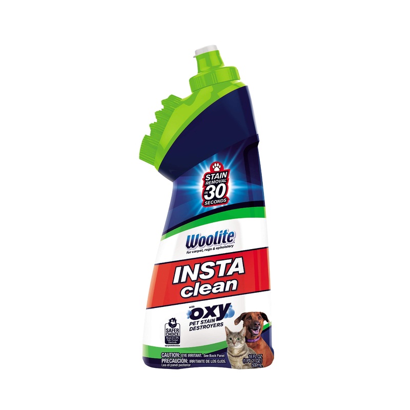 Instantly and permanently removes tough stains like urine feces vomit tracked-in dirt mud blood. Also removes grass tomato sauce salad dressing red wine fruit juice make-up food grease vegetable oil coffee Cola tea dirty motor oil and more plus the 2 in 1 cleaner has a built in rinsable brush for Fast and effective cleaning.
